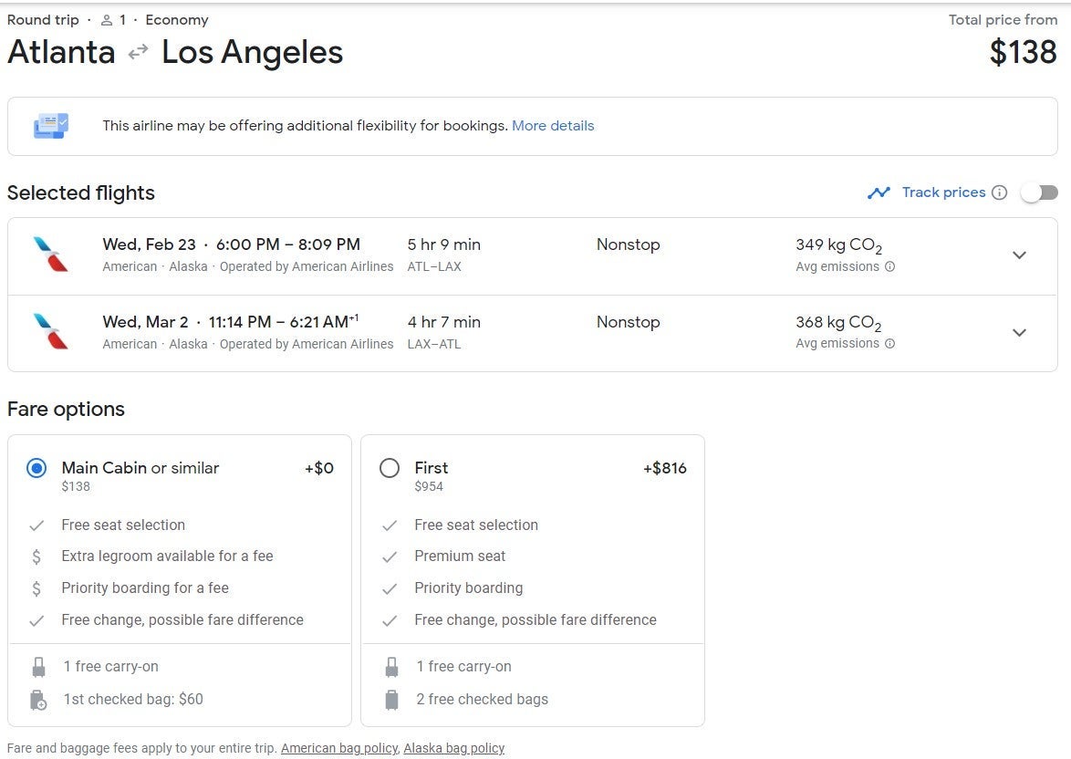 Travelers in Georgia can swap peach cobbler for some avocado toast at the same price of $138 round-trip from Atlanta (ATL) to Los Angeles.