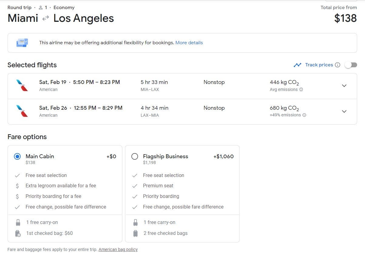 You can go from the Sunshine State to the City of Angels for $138 round-trip on a nonstop flight from Miami to Los Angeles. Some of these flights are being operated by American's giant Boeing 777-200 jets.