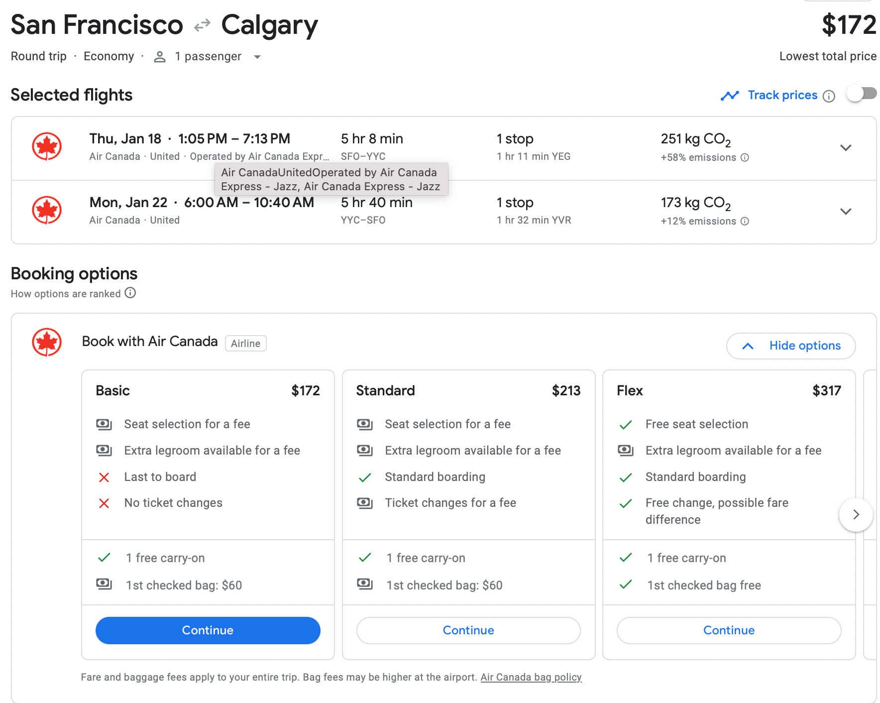 You can also fly from San Francisco to Calgary in January for just $172 roundtrip on Air Canada, with the free carry-on.