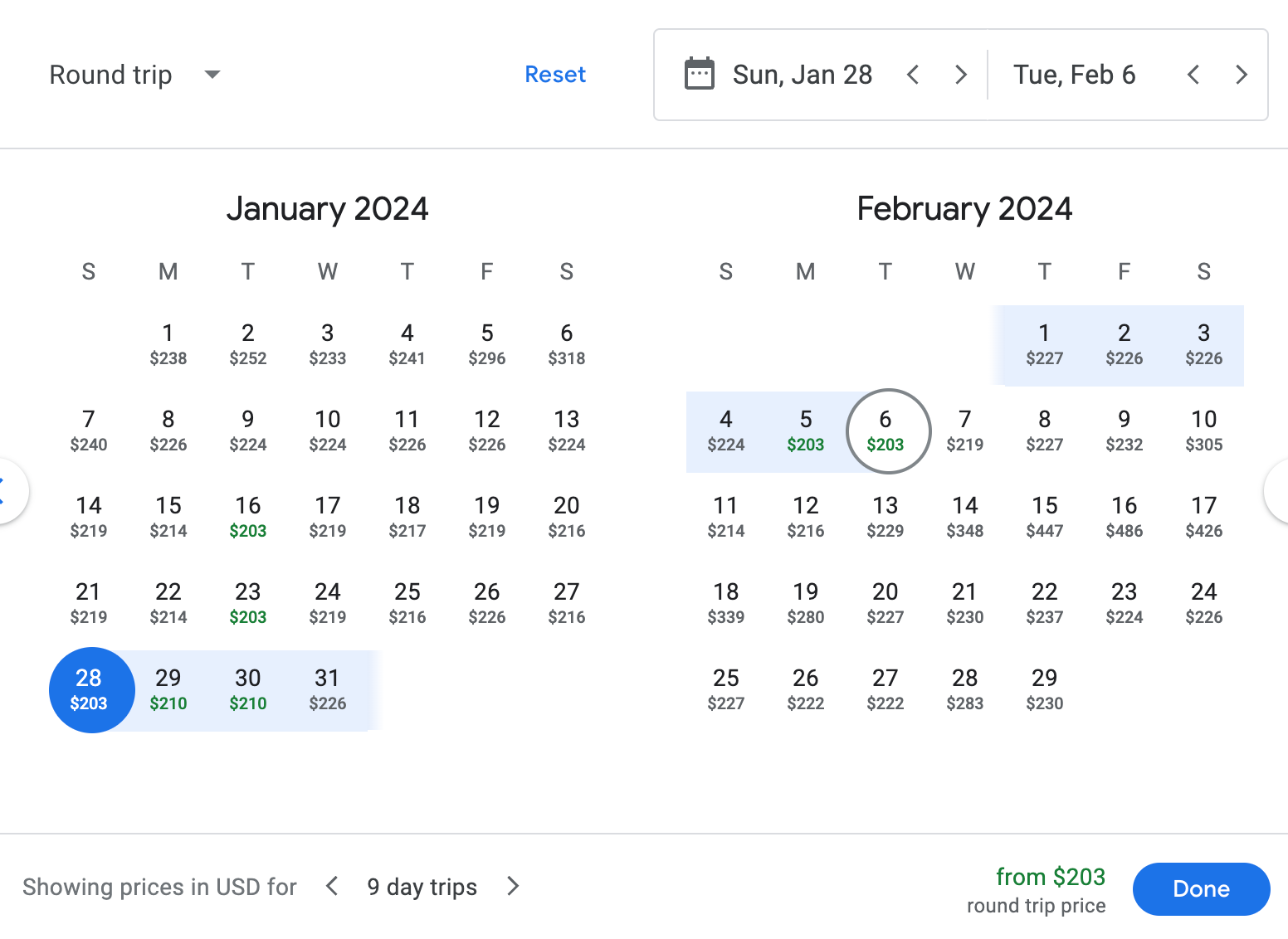 Start by browsing Google Flights to find the cheapest dates. If you're departing from Boston and want to stay longer than a week, a Jan. 28-Feb. 6 round-trip journey is one of the cheapest options.