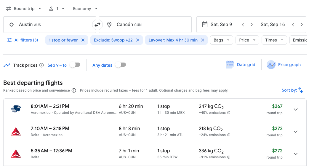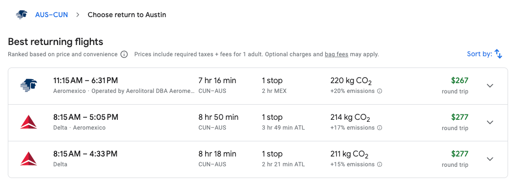 When you search this deal, you'll see that these flights are available flying basic economy on Aeromexico and Delta, with layovers both ways in Mexico City and Atlanta, respectively.
