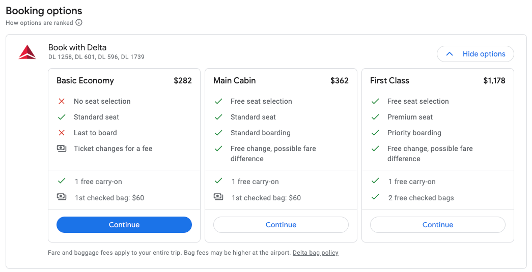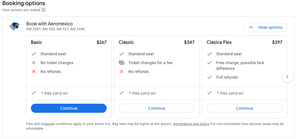 Basic economy on both carriers includes one free carry-on bag; there's a $60 fee to check a bag. Delta allows travelers to change basic economy tickets for a fee, but Aeromexico does not permit ticket changes with this fare type.
