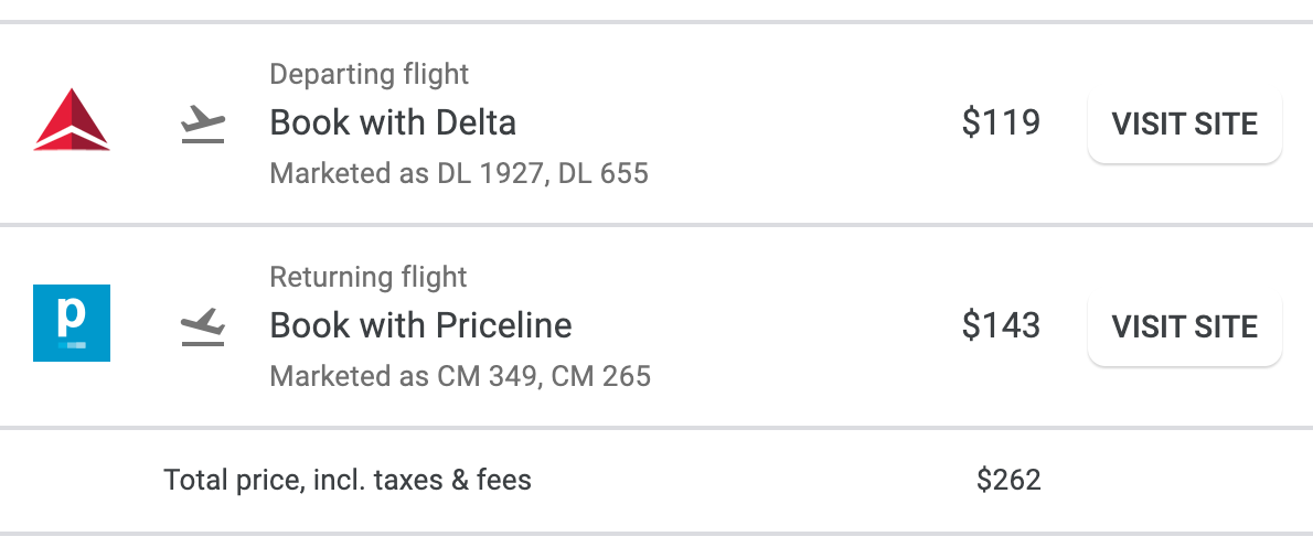 To find a deal, head to Google Flights and enter your origin and destination cities. Scroll through the calendar function to find dates and prices that work for you. Finally, click through to book directly with the airline or an OTA like Orbitz or Expedia.