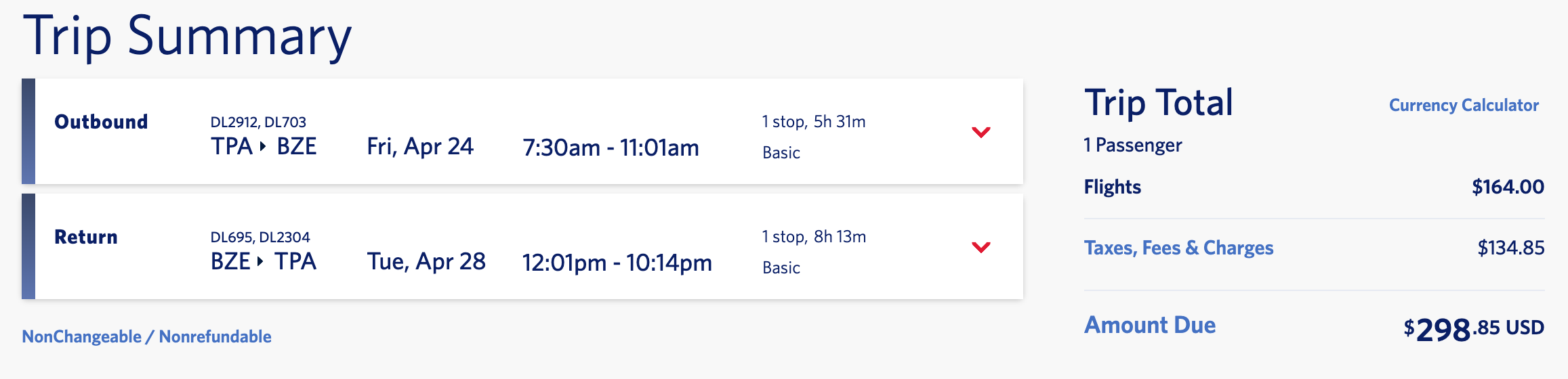 Tampa (TPA) to Belize City (BZE) for $299 round-trip on Delta basic economy: