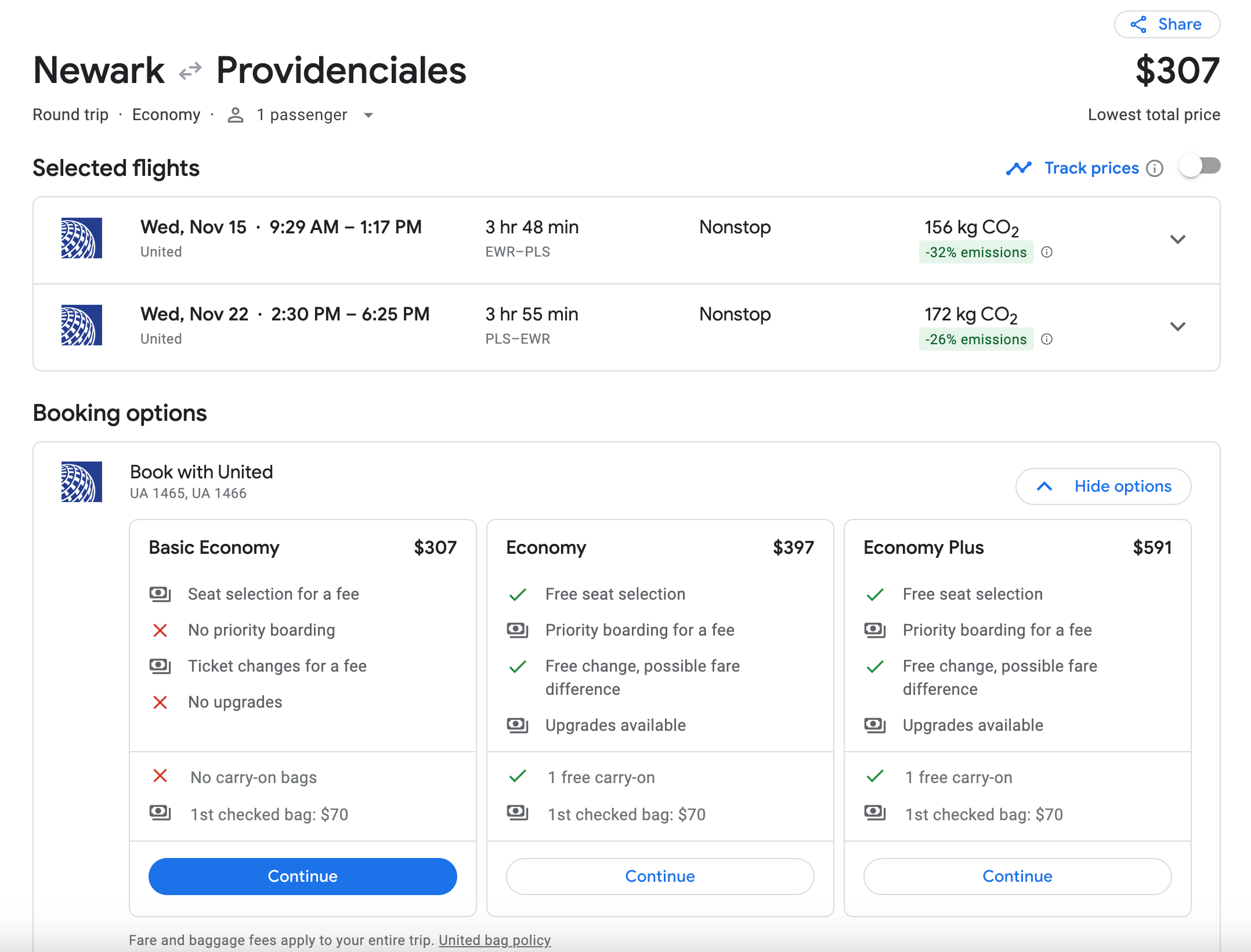 - Newark Liberty International Airport (EWR) to Providenciales International Airport (PLS), starting at $297