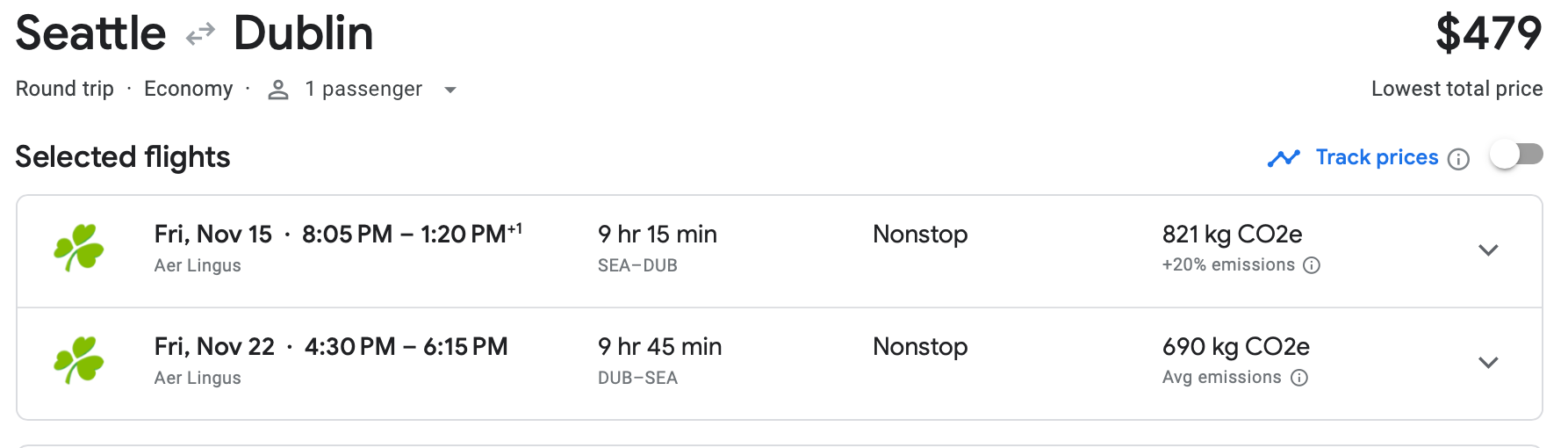 Travelers in the Pacific Northwest have lots of good options with this sale as well. We found great availability in the fall and winter for round-trip flights to Dublin for less than $500, including a nonstop itinerary on Aer Lingus.