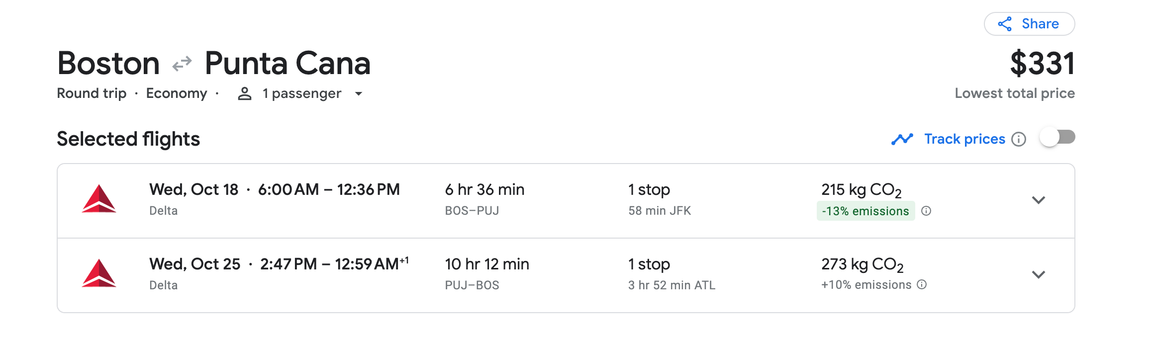 As the weather cools down in Boston this fall, you can jet off to Punta Cana in the Dominican Republic for just $331 round-trip. Note that this option has a layover each way. If you want a nonstop flight, there are fewer options, and they'll all cost more money.