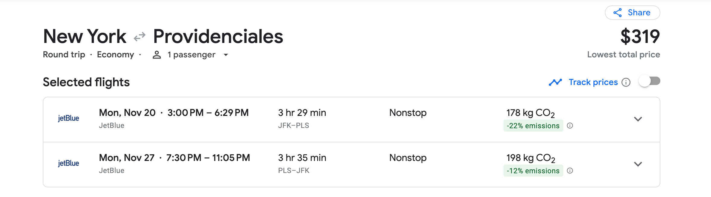 If you'd rather skip the Dominican Republic, consider spending Thanksgiving on the white-sand beaches of Turks and Caicos. There are currently nonstop flights from Newark Liberty International Airport (EWR) available for almost $200 less than usual, according to Google Flights.