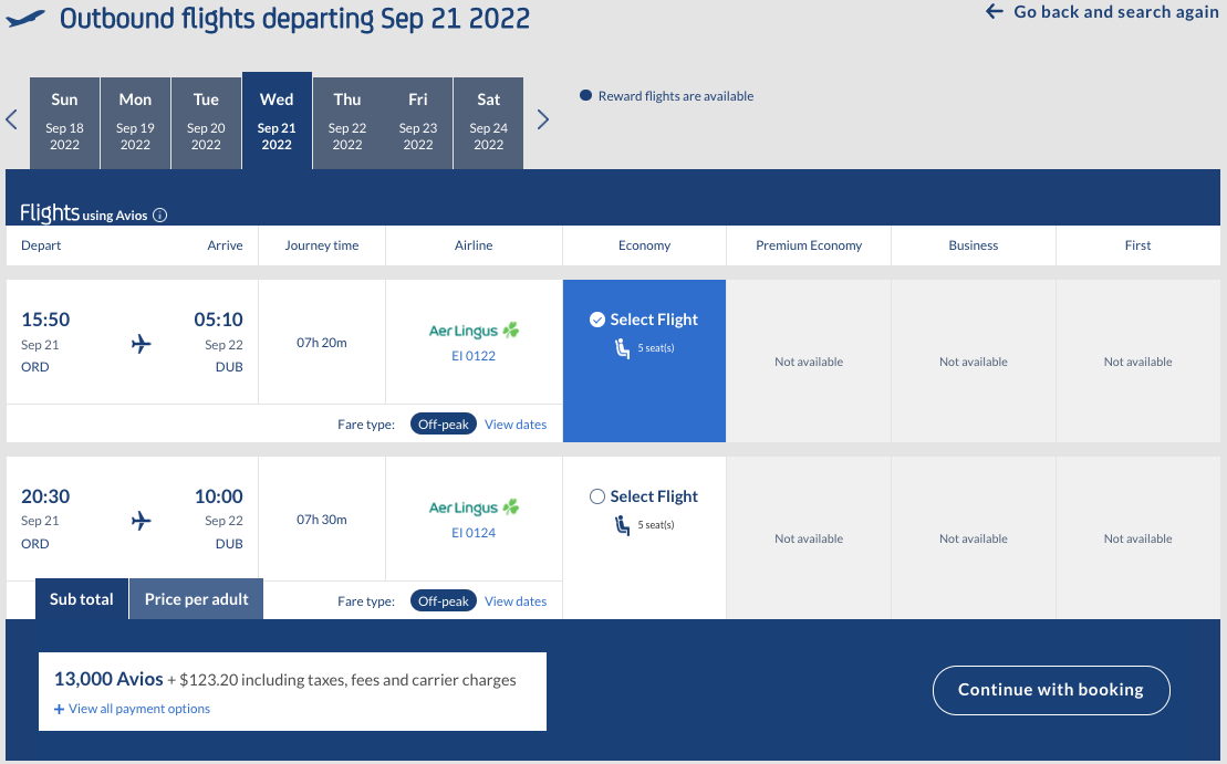 Related: Fly from the U.S. to Ireland from 13,000 Avios each way