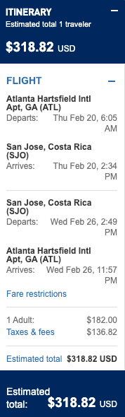 Atlanta (ATL) to San Jose (SJO) for $319 round-trip on JetBlue: