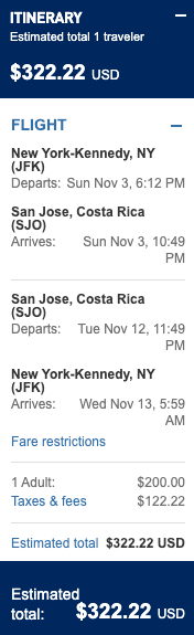 New York (JFK) to San Jose (SJO) for $322 round-trip on JetBlue: