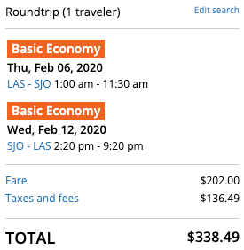Las Vegas (LAS) to San Jose (SJO) for $338 round-trip on United: