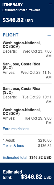 Washington D.C. (DCA) to San Jose (SJO) for $347 round-trip on JetBlue: