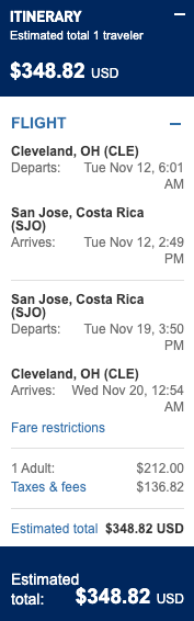 Cleveland (CLE) to San Jose (SJO) for $349 round-trip on JetBlue: