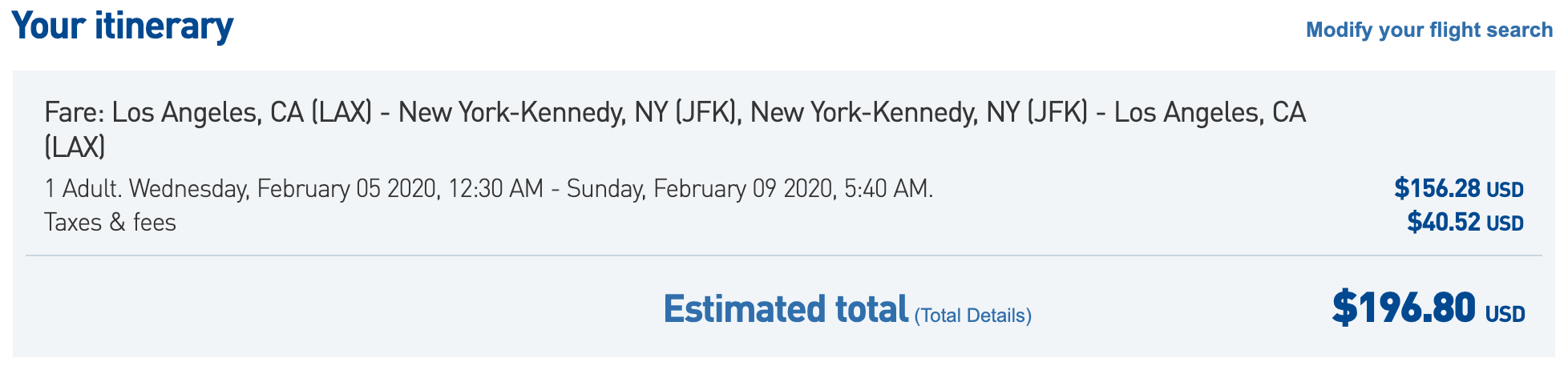 Los Angeles (LAX) to New York (JFK) round-trip nonstop on JetBlue for $197:
