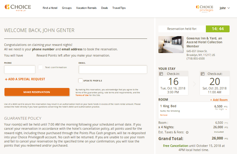 The tough part of redeeming Choice points is that the redemption rate can -- and does -- change often. For example, Katie and I booked a top-floor suite at the Gowanus Inn in Brooklyn NYC for an average of just 6,500 points per night.