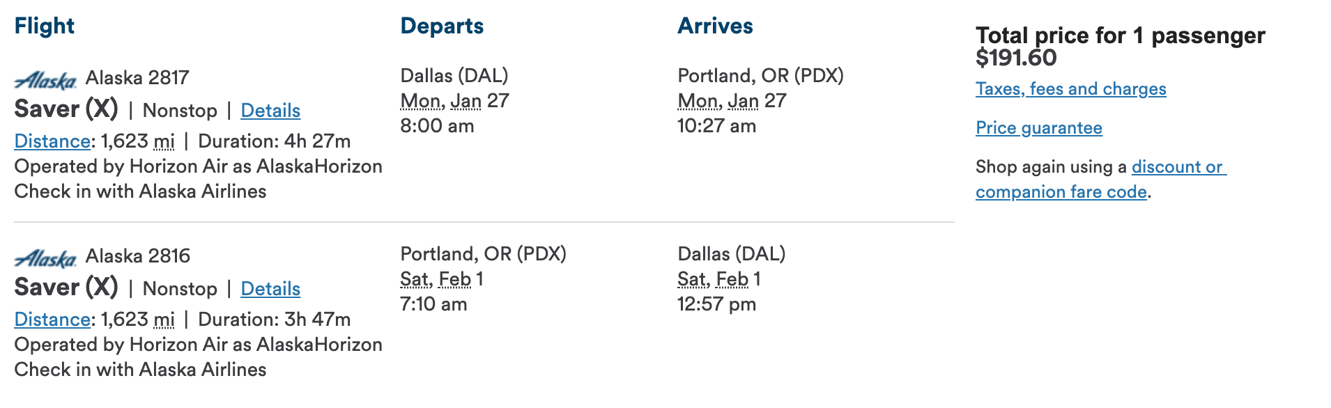 Dallas (DAL) to Portland (PDX) for $192 round-trip nonstop: