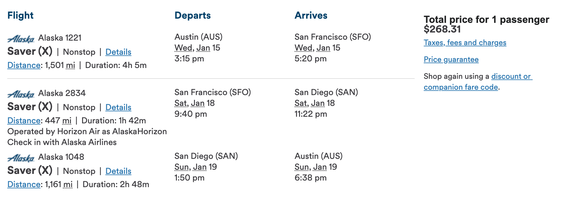 Austin (AUS) to San Francisco (SFO) for $268 round-trip: