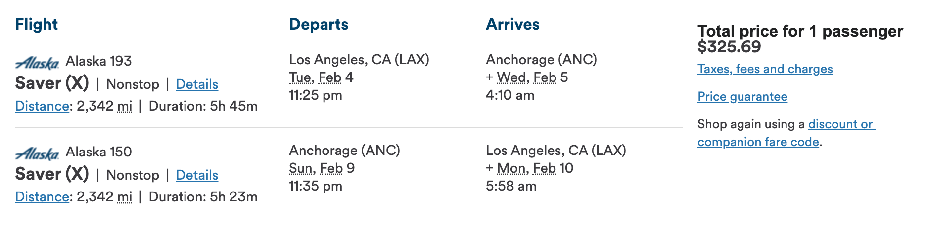 Los Angeles (LAX) to Anchorage (ANC) for $326 round-trip nonstop: