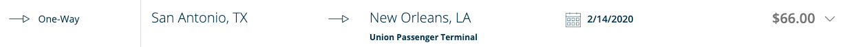 San Antonio, TX to New Orleans, LA for two people for $66 one-way: