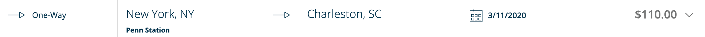 New York, NY to Charleston, SC for two people for $110 one-way: