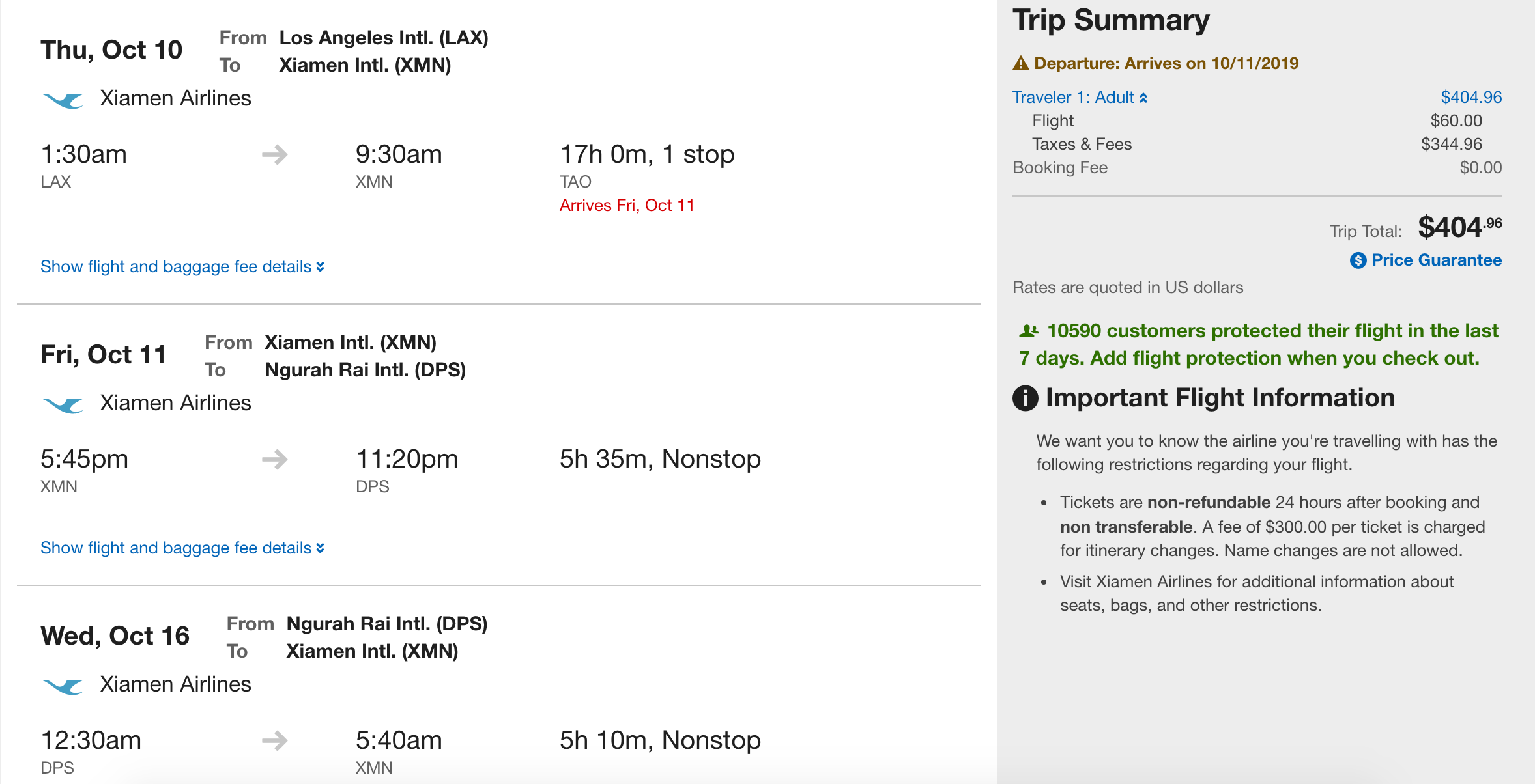 Los Angeles (LAX) to Denpasar (DPS) for $405 round-trip on Xiamen via Orbitz: