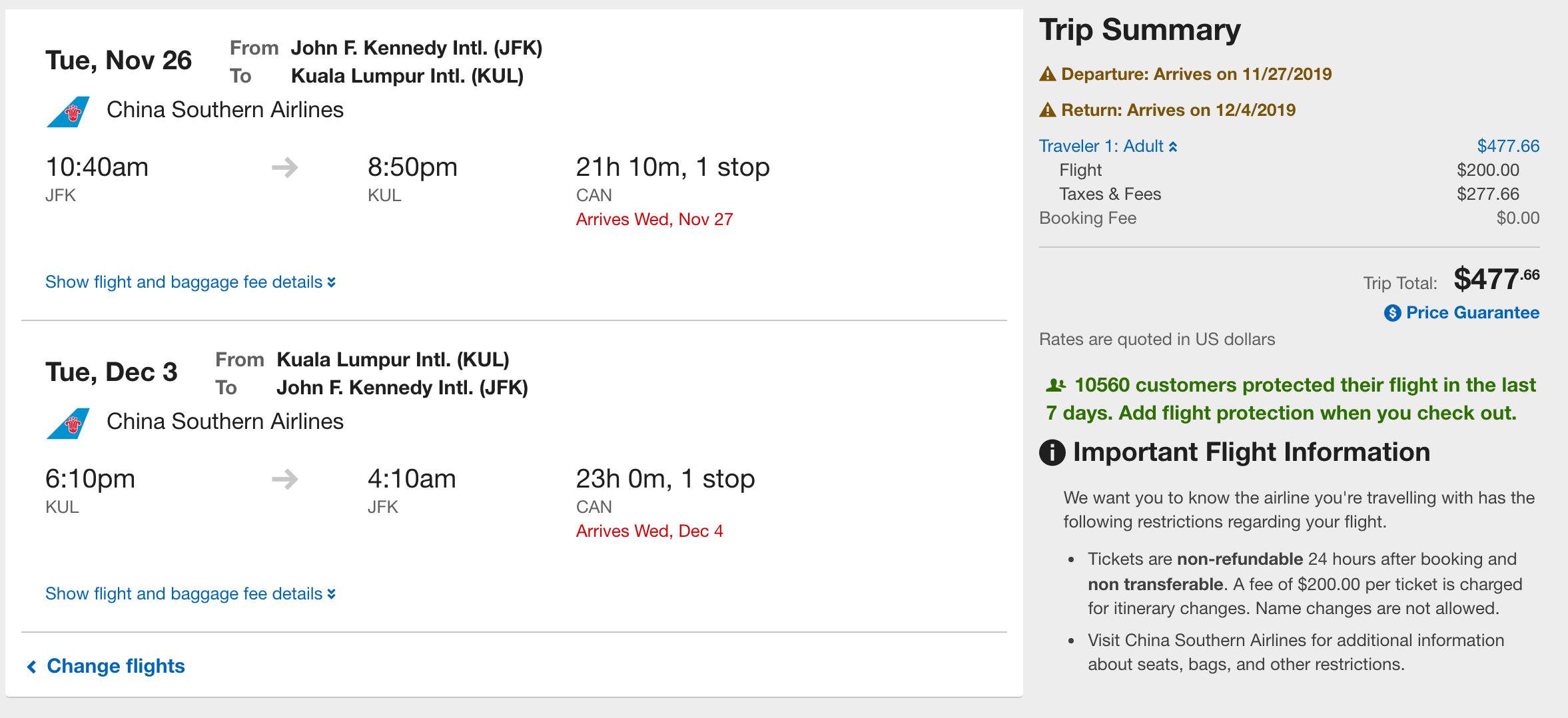 New York City (JFK) to Kuala Lumpur (KUL) for $478 round-trip on China Southern via Orbitz: