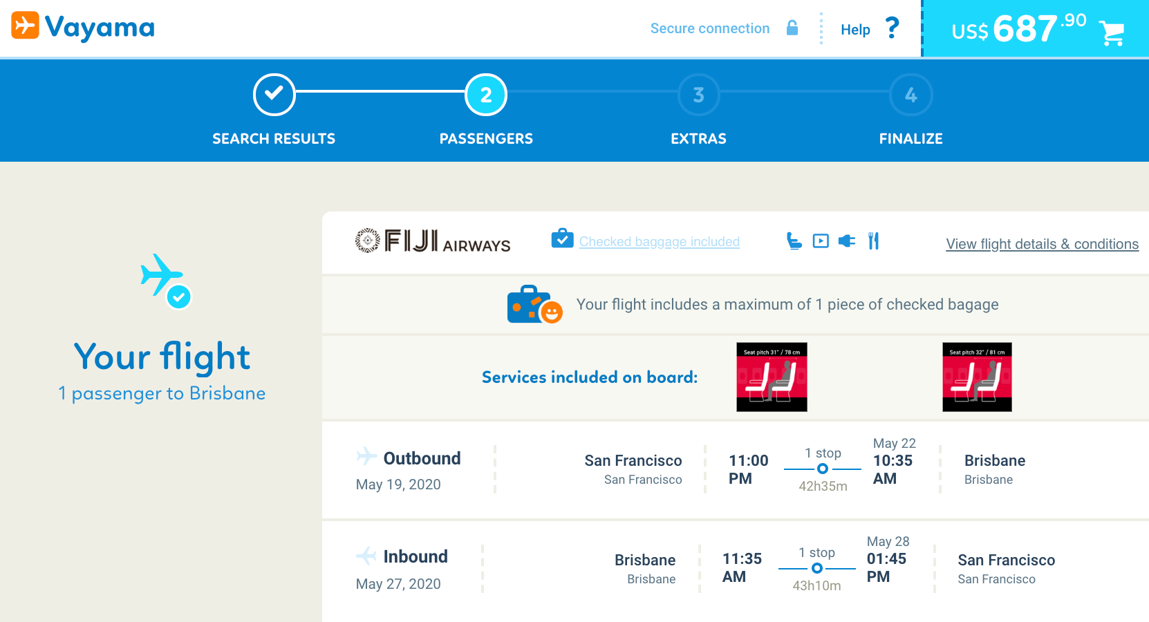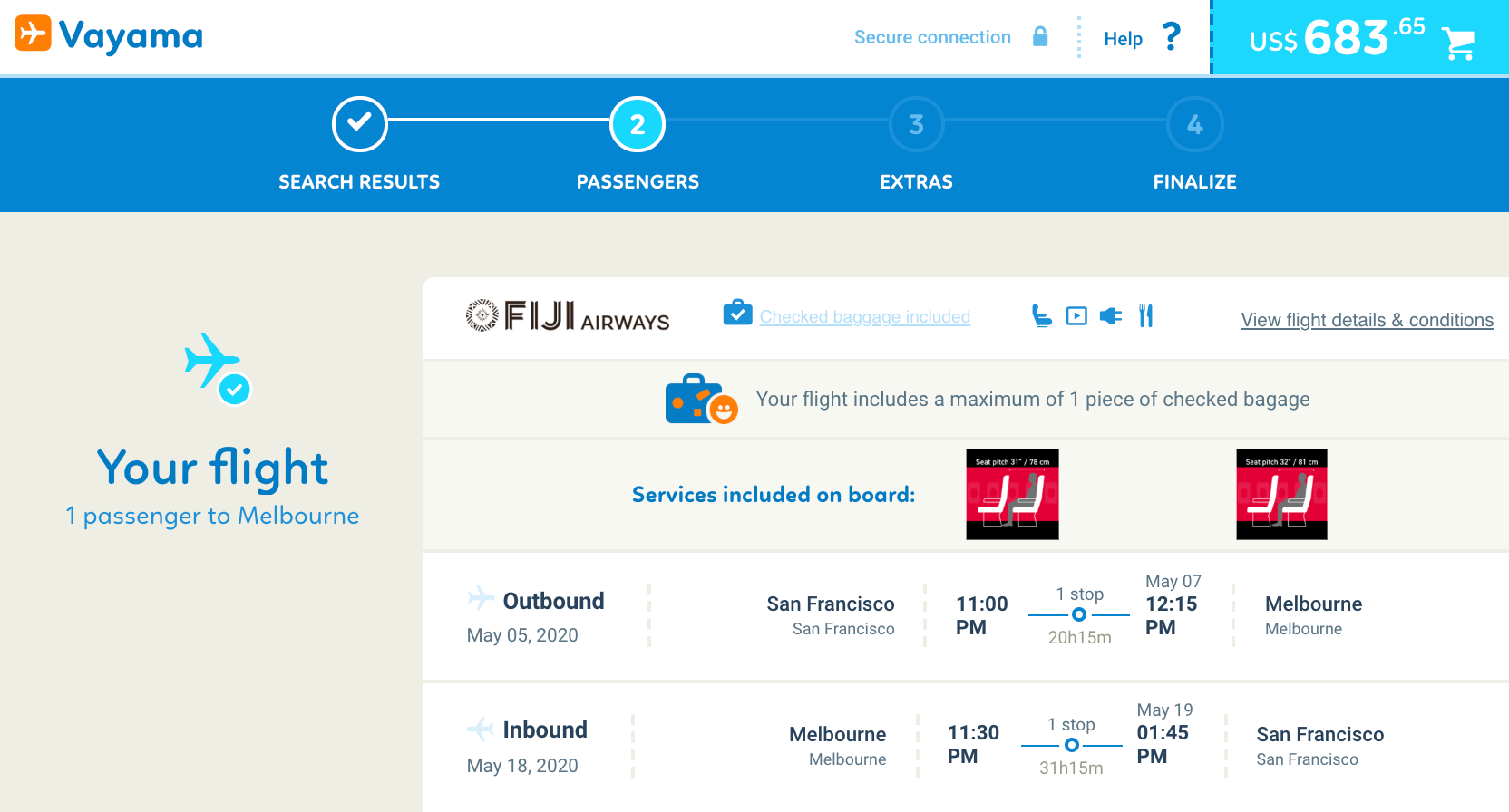 San Francisco (SFO) to Melbourne (MEL) for $684 round-trip on Fiji Airways via Vayama: