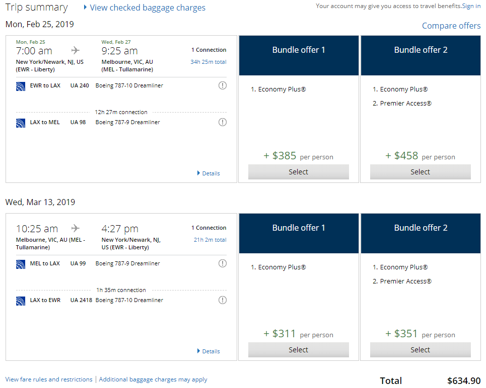 Newark (EWR) to Melbourne (MEL) for $635 round-trip on United: