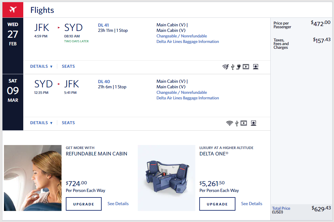 New York Kennedy (JFK) to Sydney (SYD) for $629 round-trip on Delta: