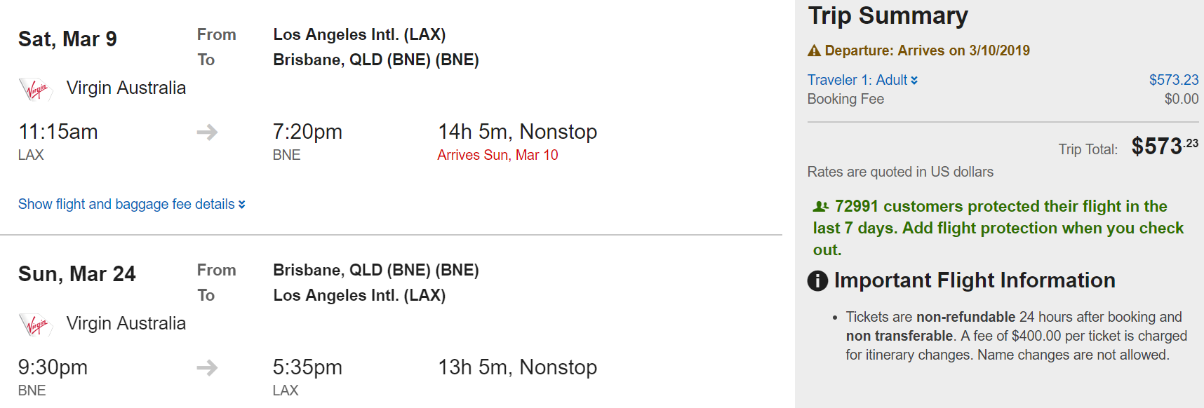 Los Angeles (LAX) to Brisbane (BNE) for $573 round-trip nonstop on Virgin Australia: