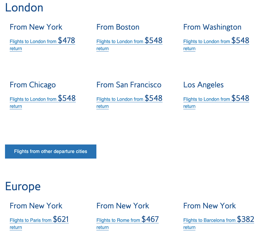 Routes: For travel from all BA operating airports in the U.S.