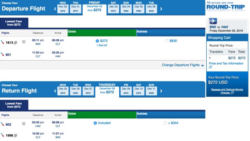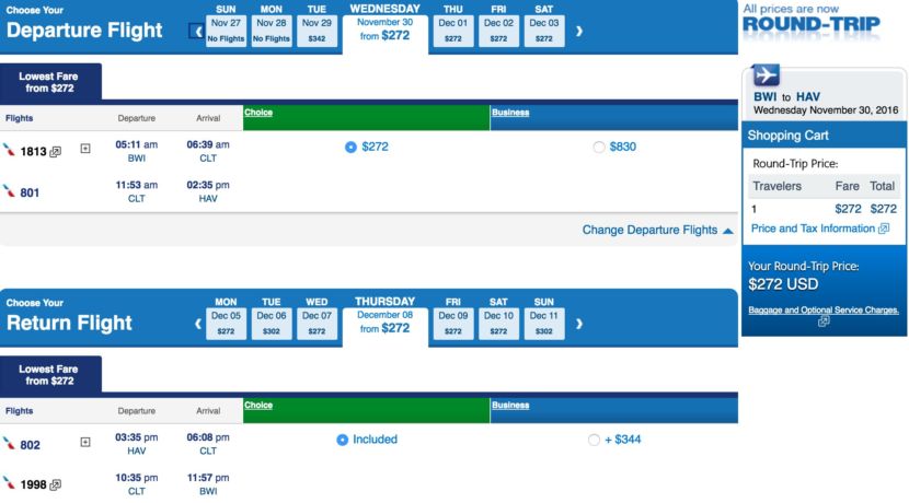 American is launching flights to Havana at the end of November, and it's now offering discounted fares to the Cuban capital to celebrate the new destination. We're seeing round-trip flights between Baltimore (BWI) and Havana (HAV) from just $272, available for departures from the end of November through early December. Now that flights to Cuba have begun, we'll be seeing more and more carriers drop fares to establish a foothold there.