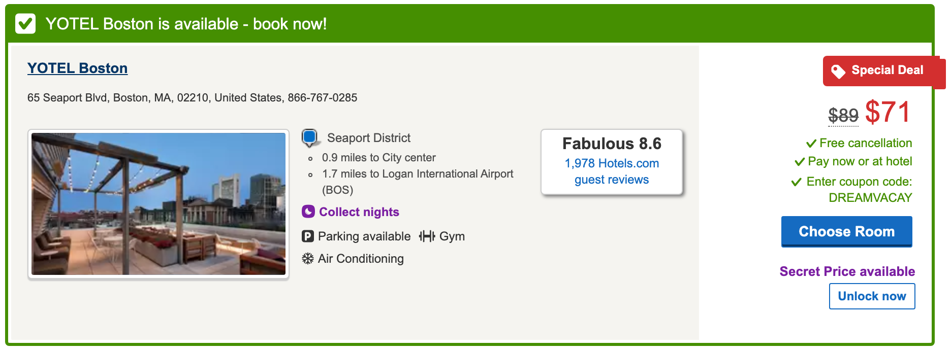 YOTEL Boston for $71 per night, plus taxes and fees, in January via Hotels.com:
