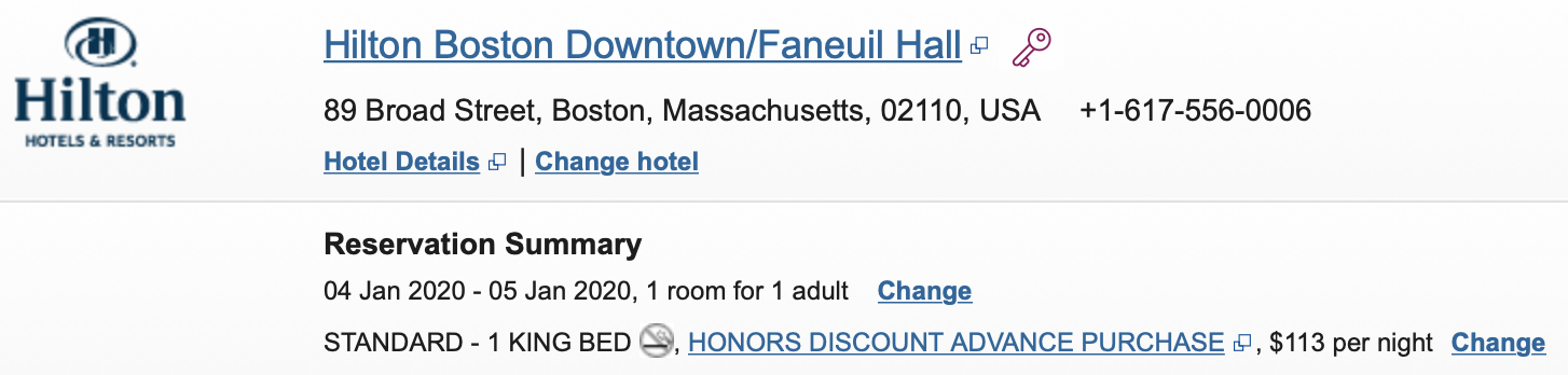 Hilton Boston Downtown/Faneuil Hall for $113 per night, plus taxes and fees, in January: