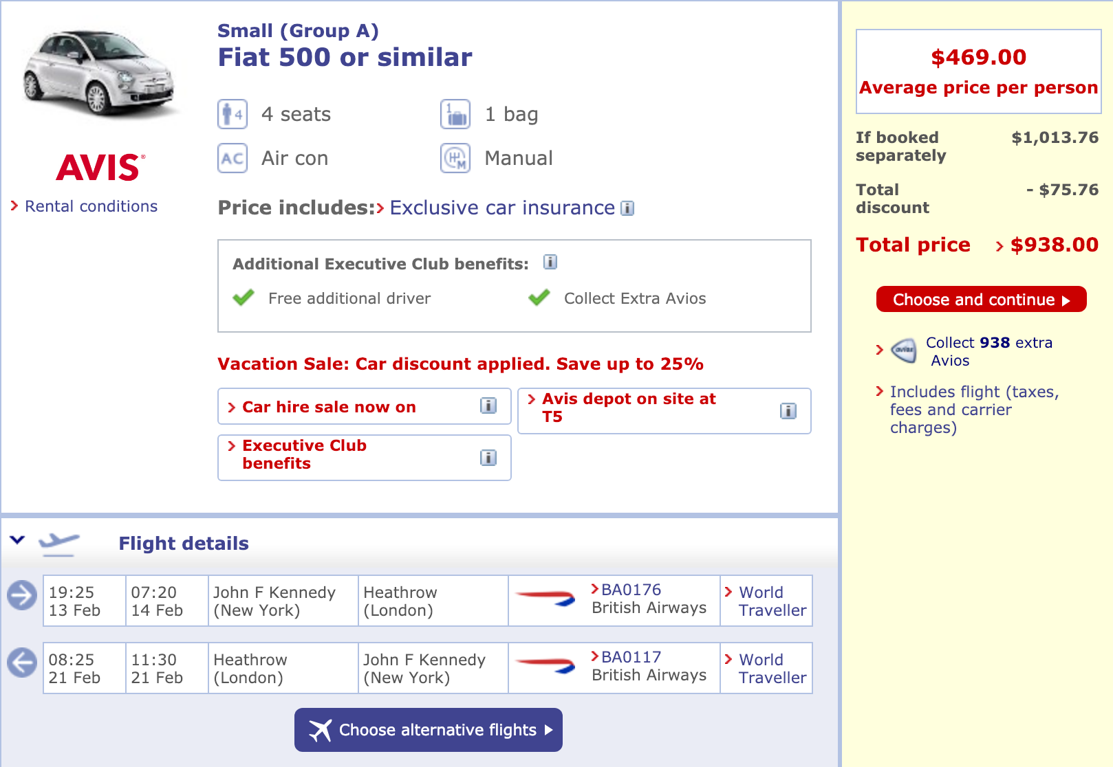 In addition to British Airways offering airfare and hotel packages, the airline is also offering airfare and car rental bundles. All hotel bundles are for five days and four nights, and car rental packages are for seven days. Car rental packages start at $469 per person.