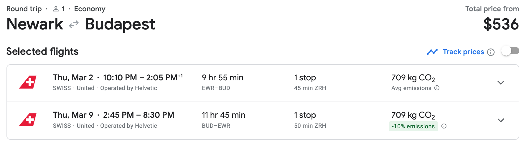 While the bulk of this deal involves flights that depart out of Los Angeles, we found some other cities with discounted fares to Hungary. For example, you can fly Swiss out of Newark Liberty International Airport (EWR) in March for only $536 round-trip.