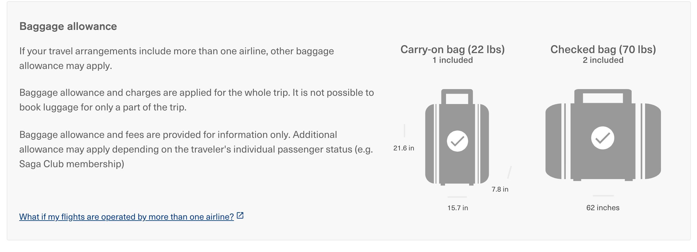 As I mentioned above, Saga Premium is the carrier's business class, which means one free carry-on and two checked bags, priority check-in, lounge access, meals and alcoholic beverages.