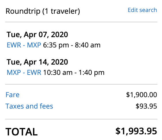 Newark (EWR) to Milan (MXP) for $1,994 round-trip in United Polaris: