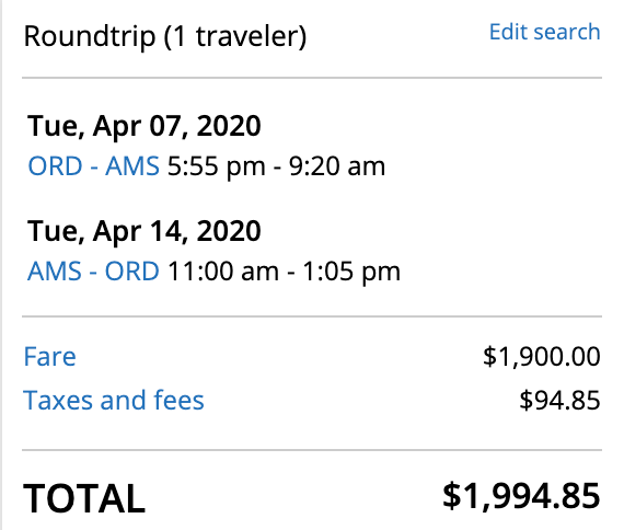 Chicago (ORD) to Amsterdam (AMS) for $1,995 round-trip in United Polaris: