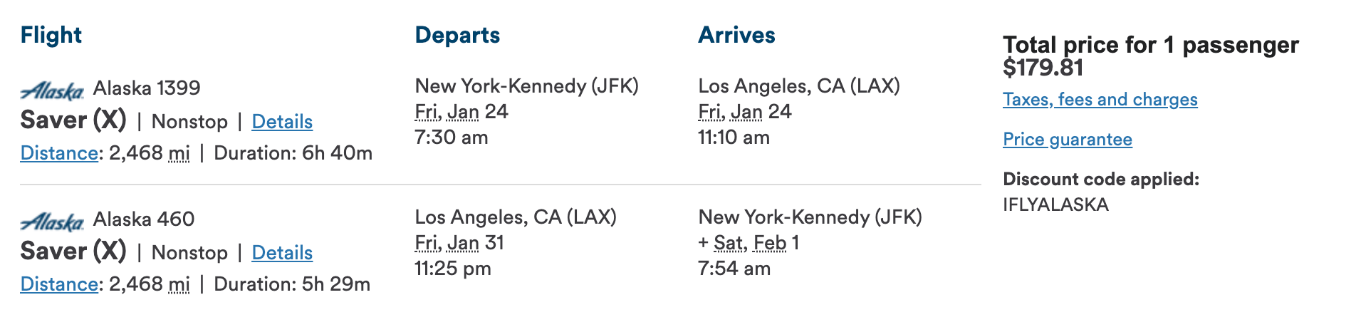 New York-JFK to Los Angeles (LAX) in January for $180 round-trip nonstop: