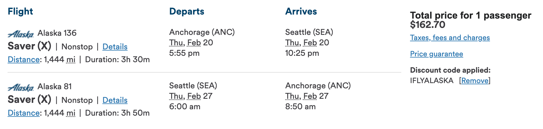 Anchorage (ANC) to Seattle (SEA) in February for $163 round-trip nonstop:
