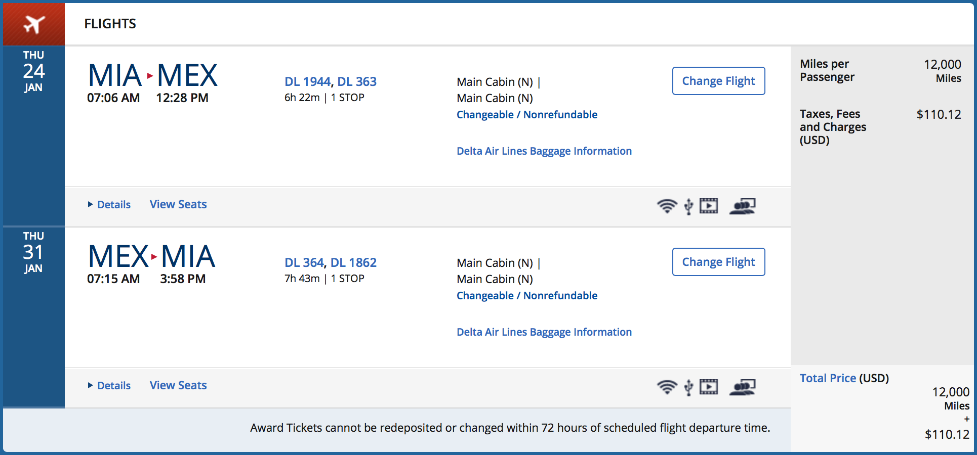 It's unclear how long this promotion will last, so it's better to book sooner rather than later. Since Delta doesn't publish an award chart, its award rates are notoriously dynamic and fluctuate based on the carrier's whims, but standard low-level award flights between the US and Mexico are typically never fewer than 17,500 SkyMiles one-way (35,000 miles round-trip).