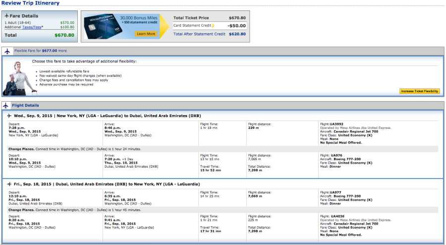 New York (LGA) to Dubai (DXB) for $670 on United