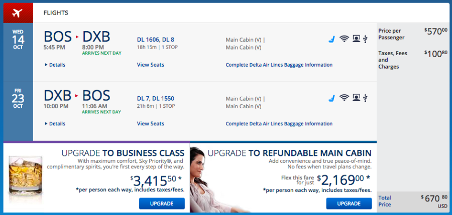 Boston (BOS) to Dubai (DXB) for $670 on Delta