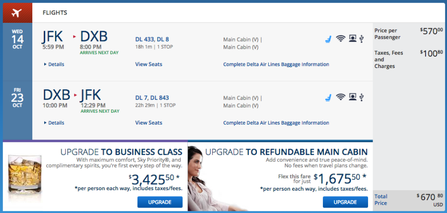 New York (JFK) to Dubai (DXB) for $670 on Delta