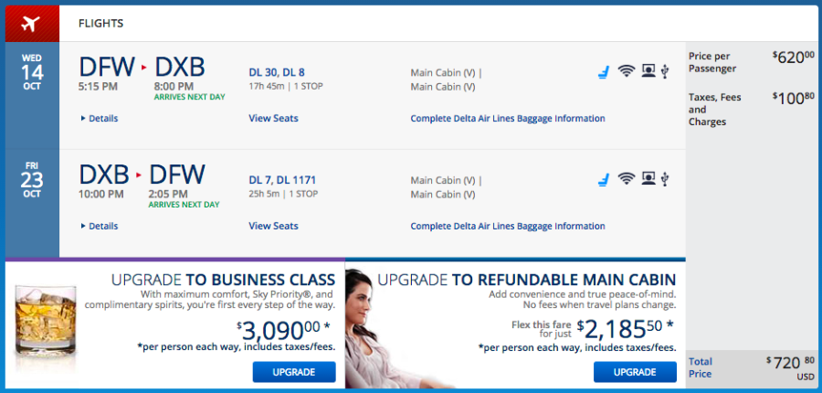 Dallas (DFW) to Dubai (DXB) for $720 on Delta