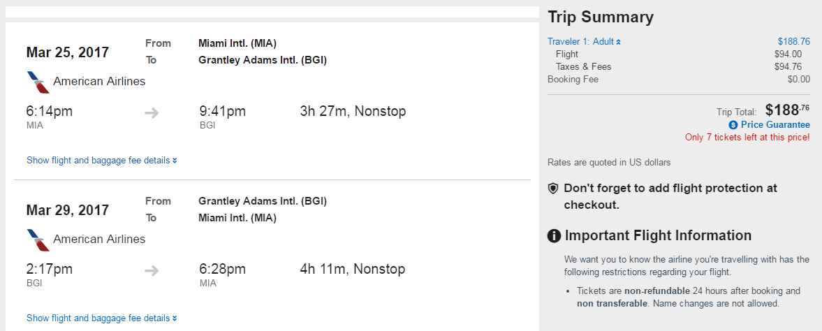 Miami (MIA) to Bridgetown, Barbados (BGI) for $189 round-trip in March via Orbitz: