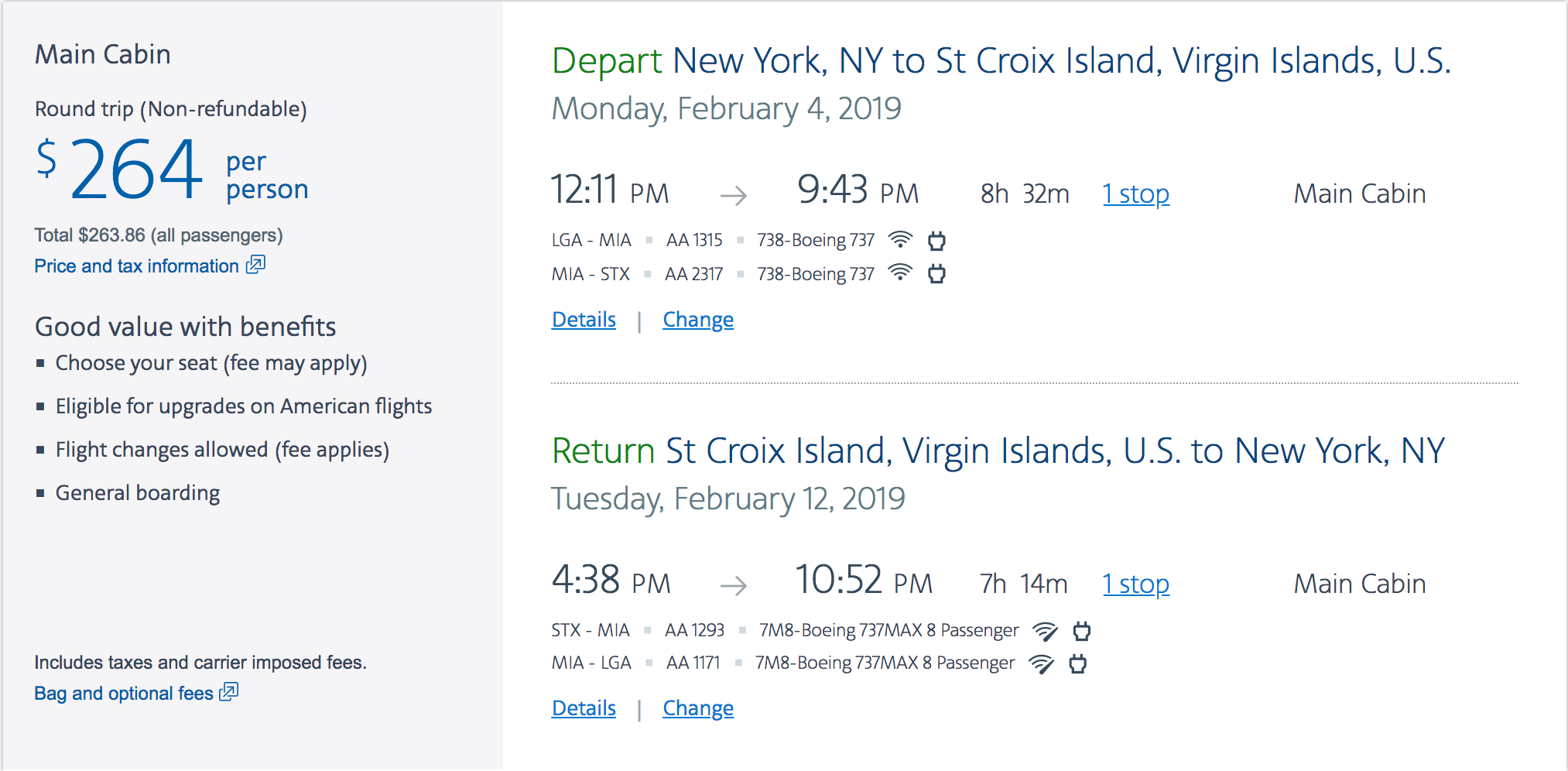 New York (LGA) to St. Croix (STX) for $264 round-trip on American Airlines: