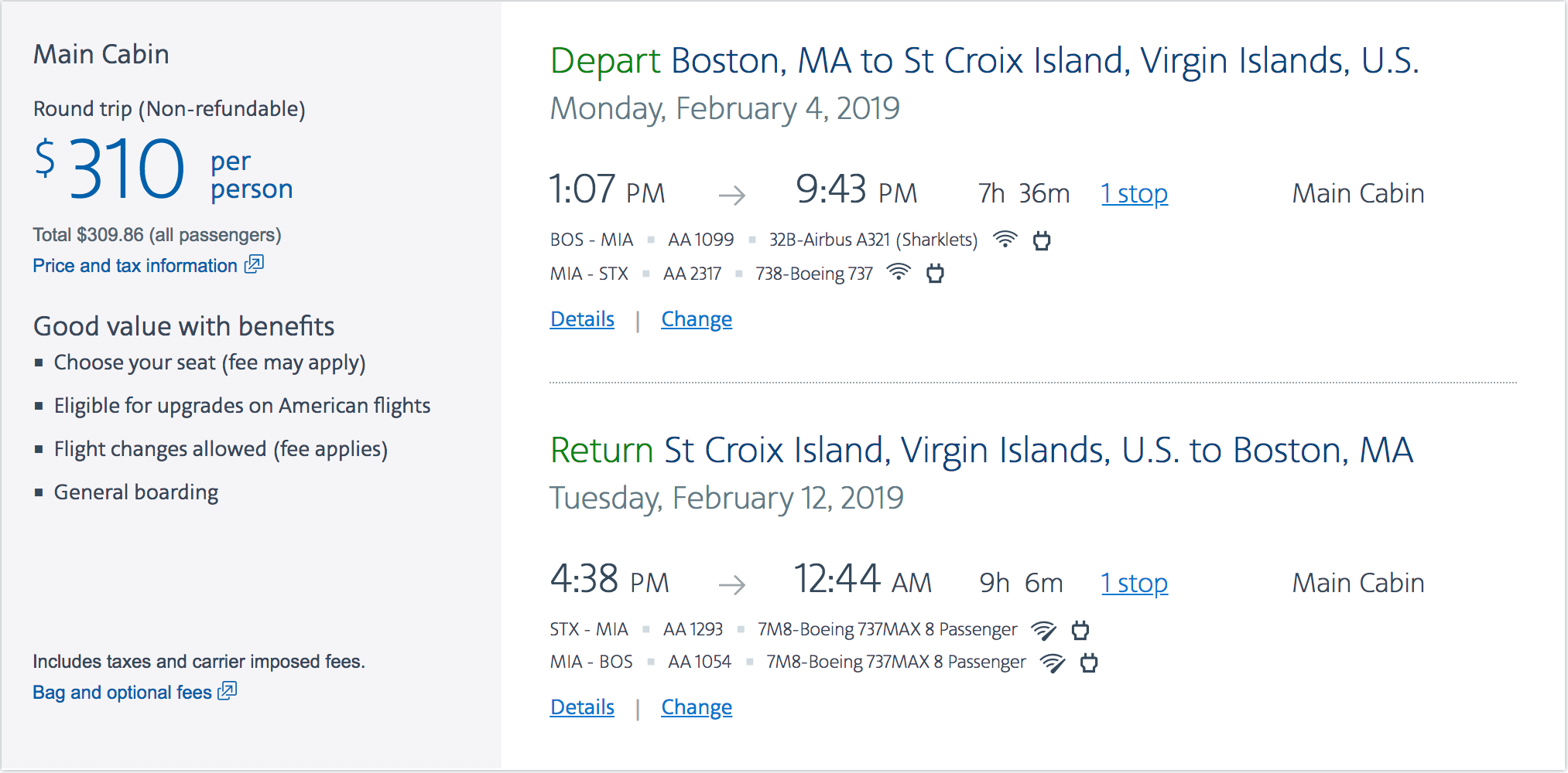 Boston (BOS) to St. Croix (STX) for $310 round-trip on American Airlines: